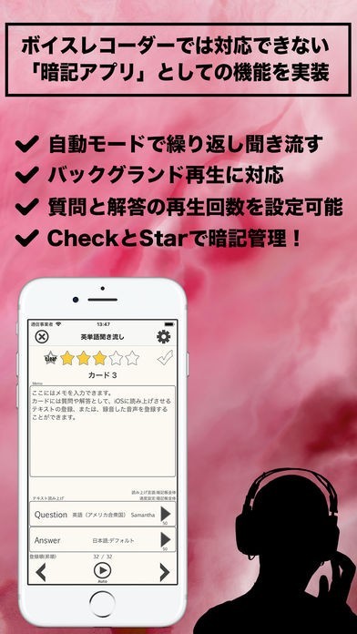 バックグラウンドで録音したデータを再生したり一時停止したりできるから、アプリを開き直す必要がありません。通勤や通学などの移動中でも楽に操作ができます。再生回数や待ち時間は自分で設定できます。