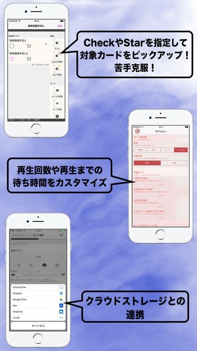 何度も聞いて覚えるための暗記カードのスクリーンショット