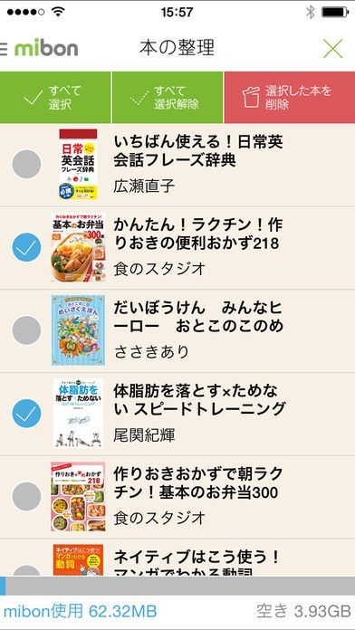 mibonでは、購入した電子書籍を本棚から閲覧することが出来る