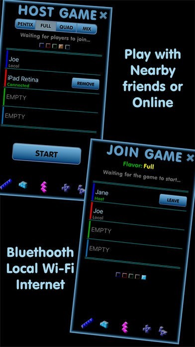 「Pentix Classic」はオンラインのマルチプレイヤーモードも搭載しています。BluetoothやローカルWi-Fiを利用して、ゲームを友達と一緒に楽しみましょう。