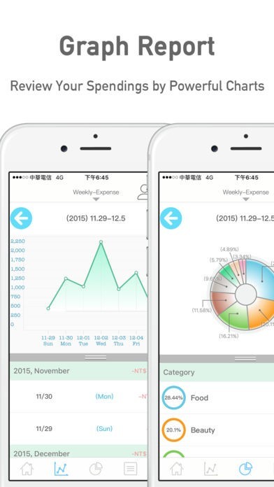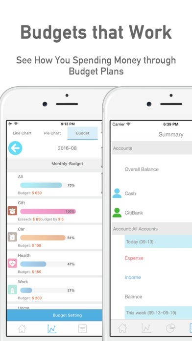 * Review your spending and earrings by weekly, monthly, yearly reports.