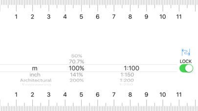 本物の定規と同じようにスマホを使いたいという方におススメです。スマホを横にしてUNLOCK中に倍率、縮尺、単位を選択すると目盛りが表示されるようになっています。