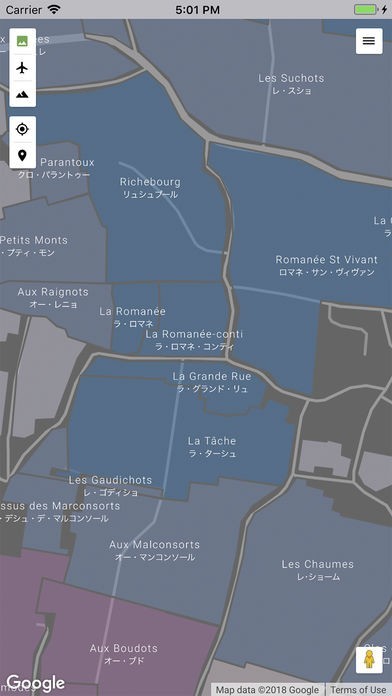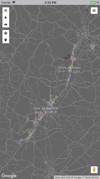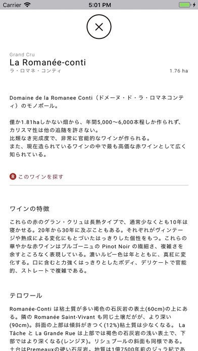 App Storeより引用ブルゴーニュの村の名前、一部の畑の名前をタップすると、テロワールなどの詳しい説明がを見ることができます。