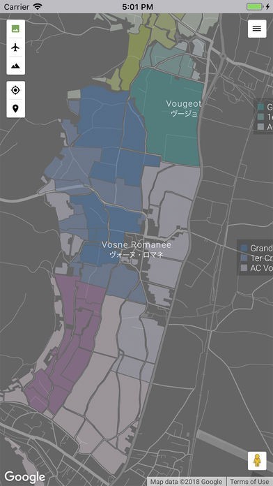 ブルゴーニュの村の名前、一部の畑の名前をタップすると、テロワールなどの詳しい説明がを見ることができます。