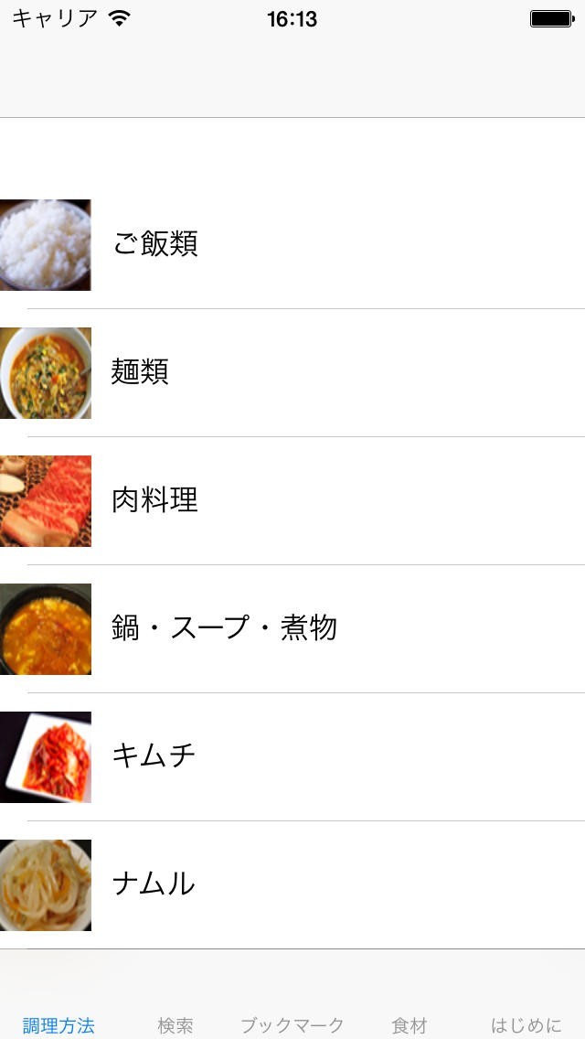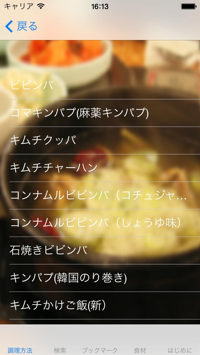 韓国料理のレシピを調理方法や使用する食材などによって検索できる!
