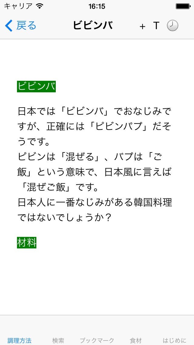 キムチやビビンバなど日本でもなじみ深い韓国料理のレシピをスマートフォンで確認することができるレシピアプリが「休日に楽しむ韓国料理レシピ」です。ご飯類や麺類、っスープなどのカテゴリーごとに分けられて料理が収録されているので、今日食べたいものに合わせてレシピを探すことができるようになっています。その他にも使用する食材に合わせたレシピの検索や、料理をするときに役立つキッチンタイマー機能など便利な機能が多数搭載されています。
