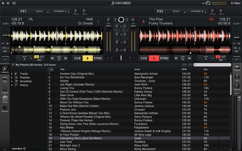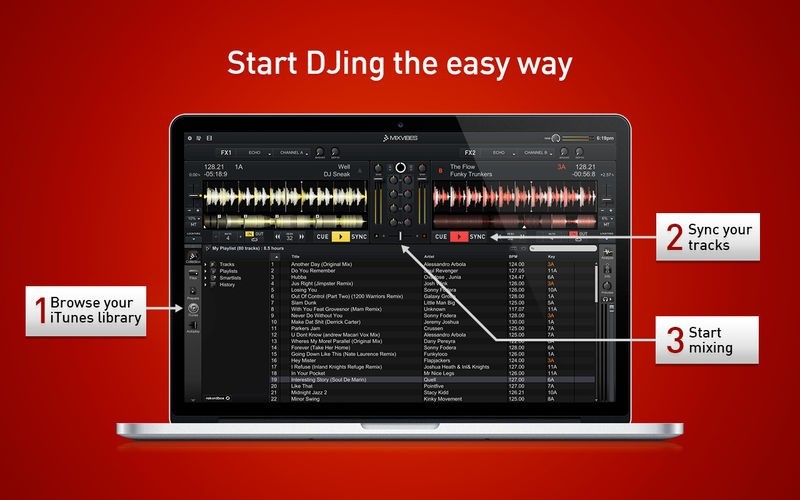 Cross DJ Free provides direct access to your iTunes library. Match the tempo of your tracks using the sync button and create smooth mixes in minutes.