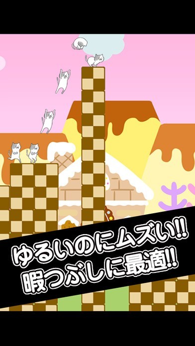 横に進んでいく猫が障害物をジャンプで避けられるようにタイミングを計って画面をタップ!