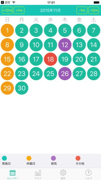 ・カレンダーでは、ステータスの確認が出来る他、ステータスを修正することもできます