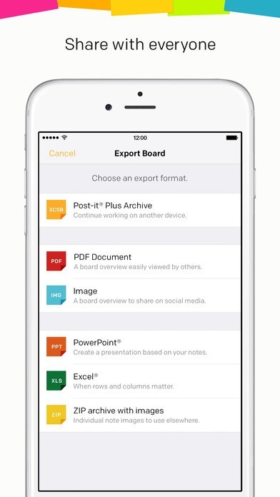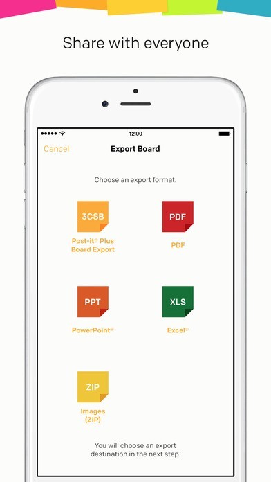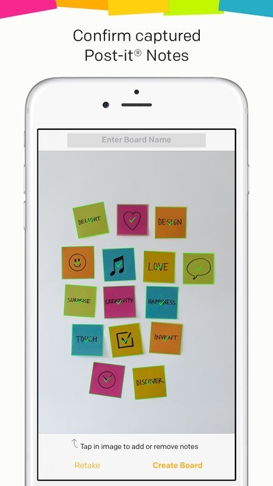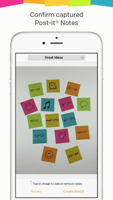 Getting started is easy. Use the app to capture an image of the Post-it® Notes from your work session. Arrange, refine and organize the notes and ideas on your board anyway you see fit. Then share your organized board with your team and send to your favorite applications—including PowerPoint, Excel, Dropbox and plenty more.