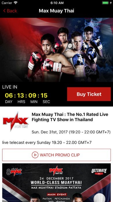 本場のムエタイの試合を日本で視聴する方法は限られていますが、このアプリはまさに有効な方法の1つです。チケットを購入することで直ぐに試合のアーカイブやライブを視聴できるようになります。