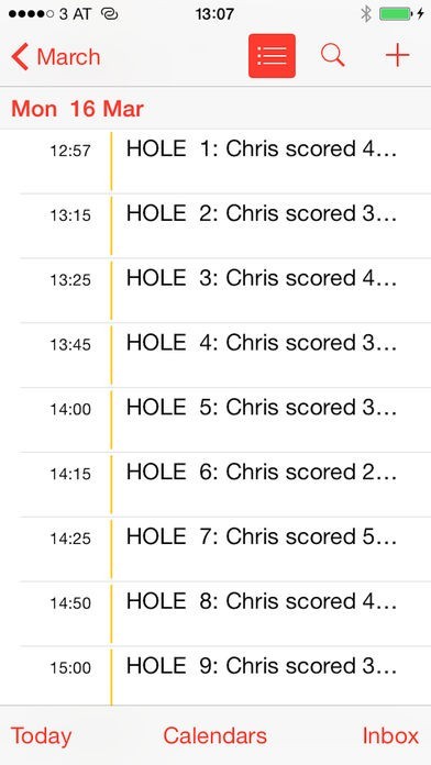 ゴルフのホールを回った日付、時間について、EメールやTwitter、Facebookで送信することができます。友人にスコアを教えるときや自分のメールに送って保存しておくのも。