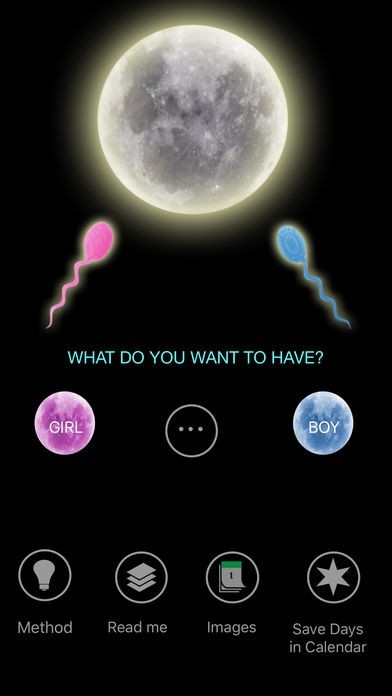 It’s a simple and natural method, which has been used successfully by ancient civilizations like the Chaldeans and it’s based on the astrological movements of the moon. According to this method, the Moon has a great influence on the acidity level of the vaginal fluid. On the other hand, scientific studies have indicated that the acidity of the vaginal fluid determines which of the two types of chromosomes (i.e. the X female or Y male chromosome) reaches its objective. This App indicates which days the Moon influences to have a boy or a girl.