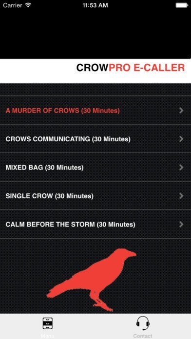 App Storeより引用Want an affordable crow E-Caller? The CrowPro crow electronic caller app provides you crow hunting soundtracks at your fingertips. These soundtracks are clear, crisp, lifelike and effective. Five 30 minute soundtracks included. Connect the app to your speaker and amplifier system to pull in flocks of wary crows.