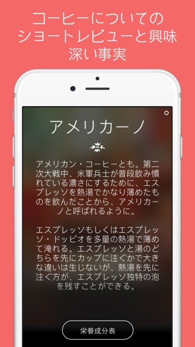 エスプレッソやコーヒーに関する情報が掲載されていて、作り方や手順が調べられるのも特徴でした