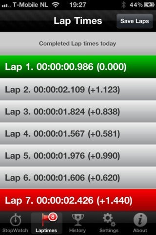 自分のラップタイムの保存ができてすべての周回のラップタイムの差を出す事が可能になります。これで一番速く周回できたのと一番時間がかかった時でどれくら差があるか簡単に分かります。
