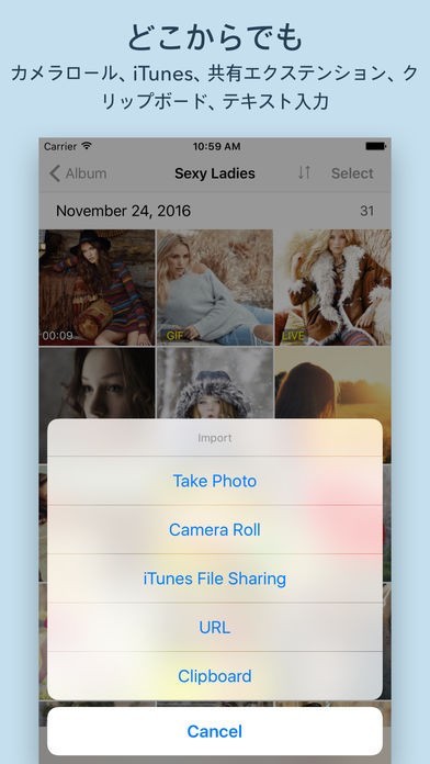 アプリにパスワードを設定して自分以外の誰にも見られないようにします。インポートした写真はアプリの中でフォルダ分けして管理することも出来る為、必要なものだけ取り出したい時にもすぐに見つけれるので便利です。