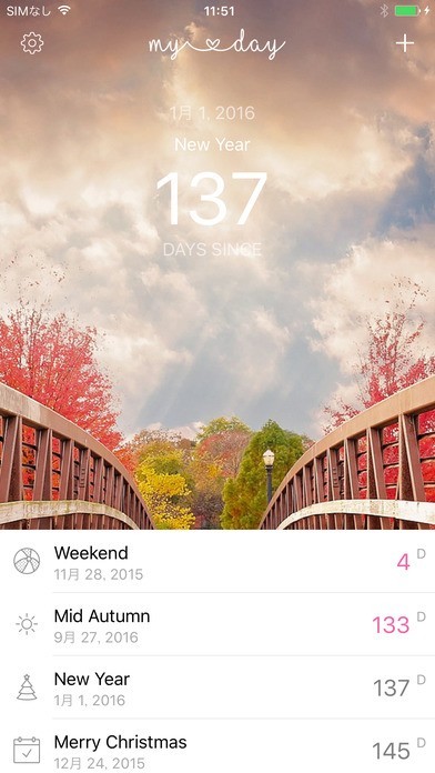 管理できるものは一つだけではなく、同時に様々なイベントをセットしておくことができます。残り日数をリアルタイムにカウントしてくれるので、複数のタスクやスケジュールも一目で再確認できます。