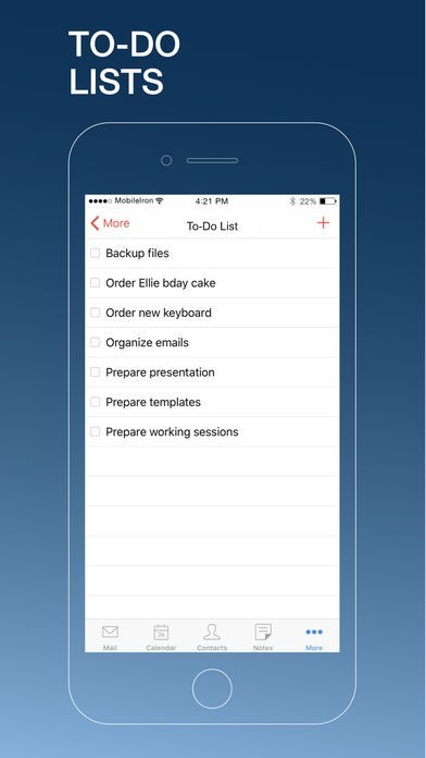 NOTE: Email+ requires MobileIron's Enterprise Mobility Management platform. Please consult with your organization's Mobile IT staff before downloading and using Email+.