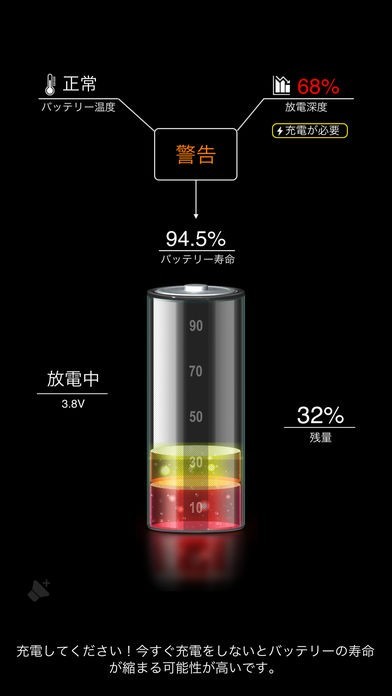• バッテリー残量、バッテリー寿命を同時に表示