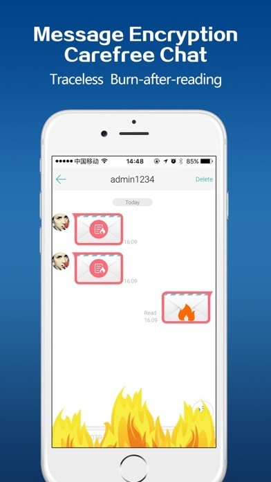 (2) Burn-after-reading messages: Have burn-after-reading messages feature for picture, voice message and text message. Transmission of messages is TLS encrypted.