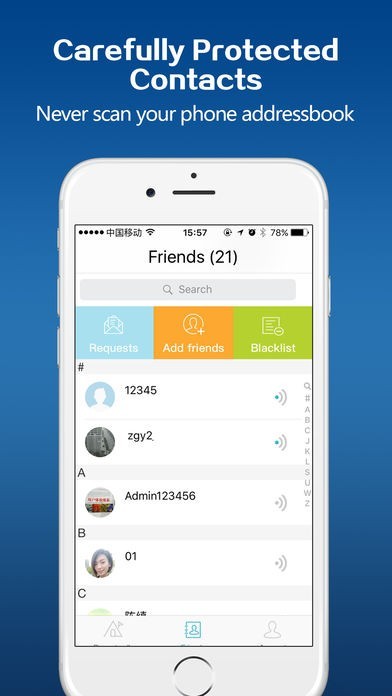 Just input your nickname, password and avatar, it’s done! Don't need phone number or other method to authenticate.