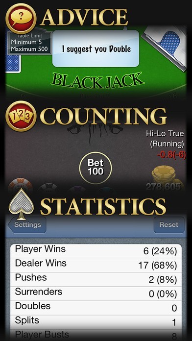 Currently the most popular Blackjack application, anybody can step up to the table at any time of the day and feel the thrill of trying to win BIG [money] against the house! Strategies such as being able to split or double down allow players to become high rollers all without leaving their seat.