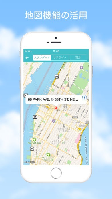 ・ホテルや訪問先を地図上にプロットしルート検索
