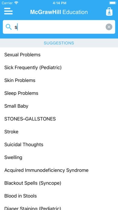 App Storeより引用The Common Symptom Guide is the most trusted and easy-to-use reference for quickly and accurately evaluating and treating patients based on presenting symptoms. The Guide includes lists of pertinent questions, physical findings, and differential diagnosis for more than 100 of the most common adult and pediatric symptoms so you can instantly diagnose and treat the complaint.