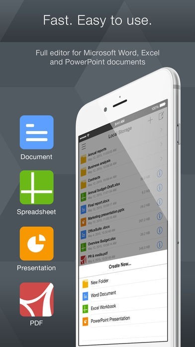 このアプリは、Microsoft Office Word、Excel、PowerPoint、およびPDF形式のファイルに対応したビューワーアプリです。エディタアプリとしての機能も備えており、スマートフォンでファイルの内容の編集や修正が可能です。