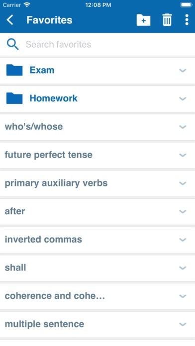 • ‘Favorites’ that allow you to create custom folders with lists of words.