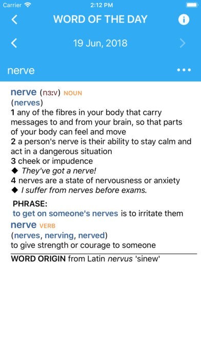 「WORD OF THE DAY」というコーナーが用意されており、毎日色々な語が紹介されています。今までは見落としてきた内容を学び直すことができるので、より充実した学習ができます。