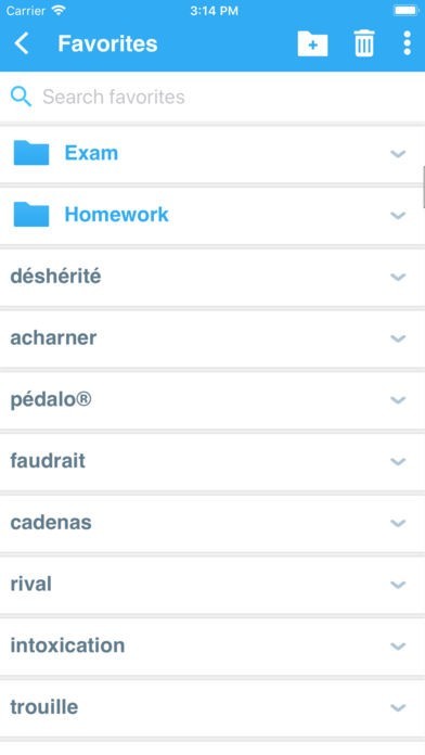 • ‘Favorites’ that allow you to create custom folders with lists of words.