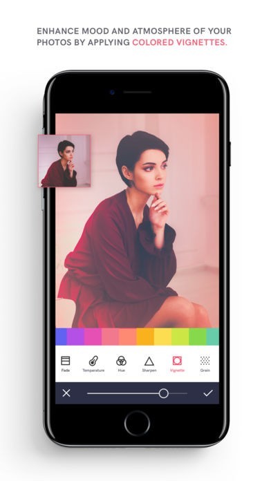 • Enhance mood & atmosphere of your photos by applying colored vignettes.