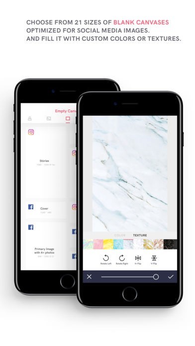 • Choose from 21 sizes of blank canvases optimized for social media images.