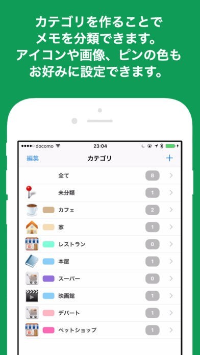 メモだけでなく、写真・ボイスメモなどを挿入することができます。カフェやデパートなどカテゴリーごとにアイコンが表示されるので、地図上で見た時も一目で分かるようになっています。