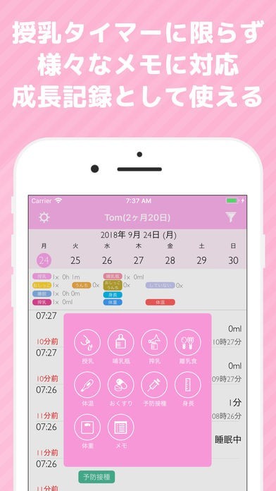 授乳やミルクの時間を簡単計測!メモに体温の変化や離乳食に関する補足情報をまとめて記載しておける!