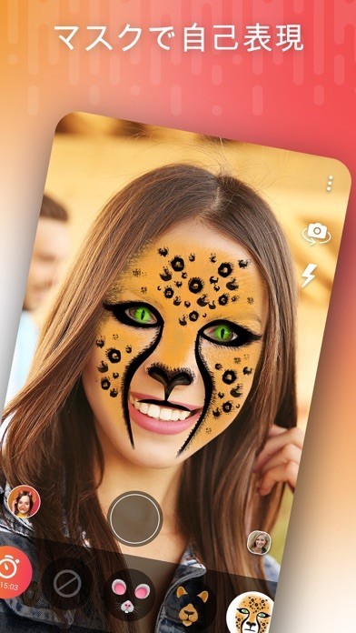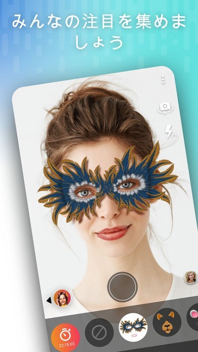 自撮り写真に様々なマスクやアイテムが挿入出来るようになっています。動物や仮面等の複数のカテゴリーに対応していて、タップ操作で簡単に追加出来るのもメリットでしょう。