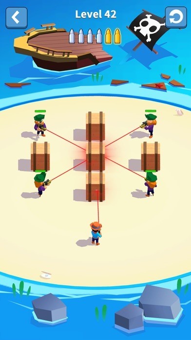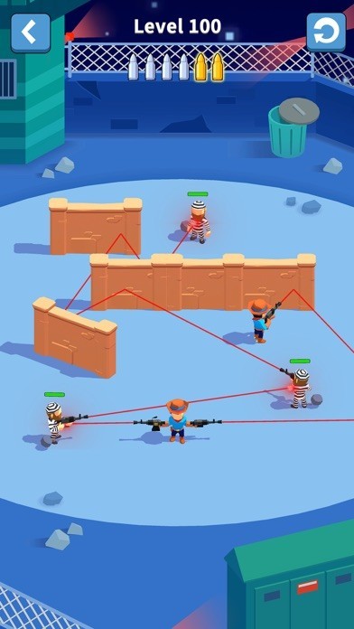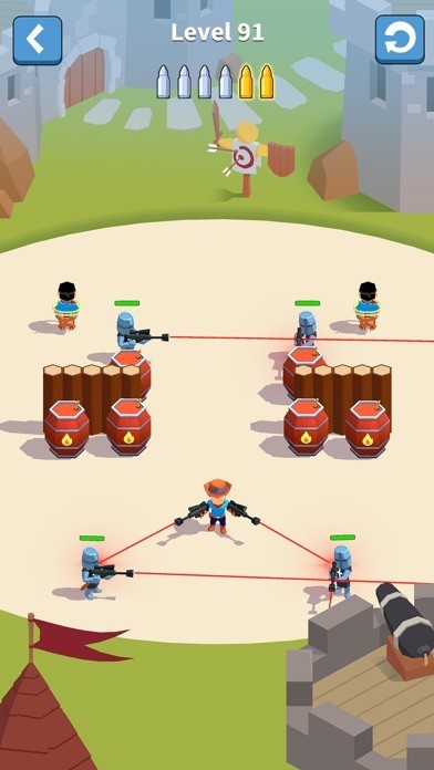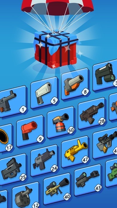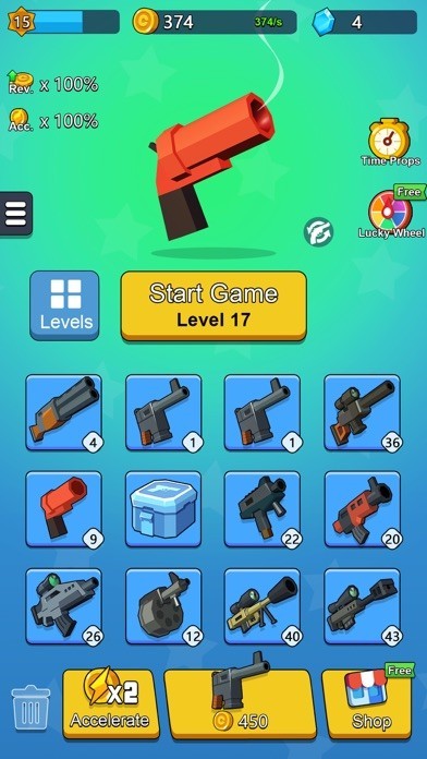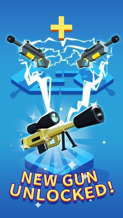 A gun will be given every few seconds, and you can purchase it from the shop. Compound the guns of the same level to get a more powerful one! The more advanced the gun is, the more damages and revenue it will cause. Use the weapon wisely and aim at your enemy, shoot them with the golden bullets so that you can earn three stars as well as the coins and diamonds!