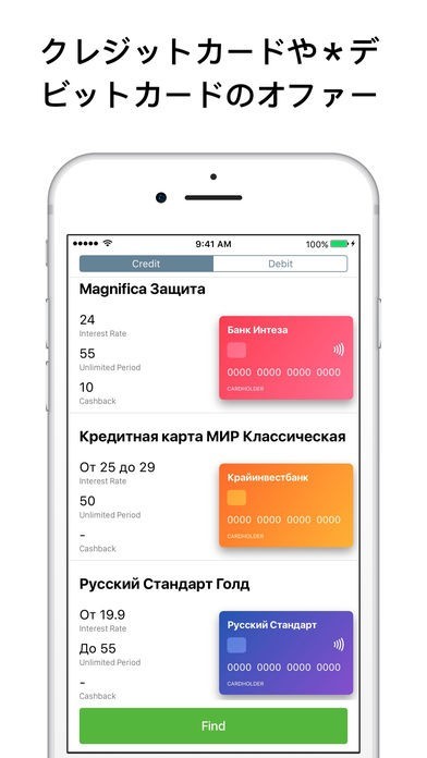 ロシア銀行のクレジットカードをオンライン上で発行出来るスマホアプリ