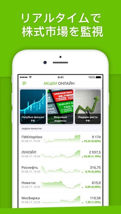 「株式オンライン」アプリはロシアの証券市場に関する最新情報を提供していて、リアルタイムでデータを更新しています。