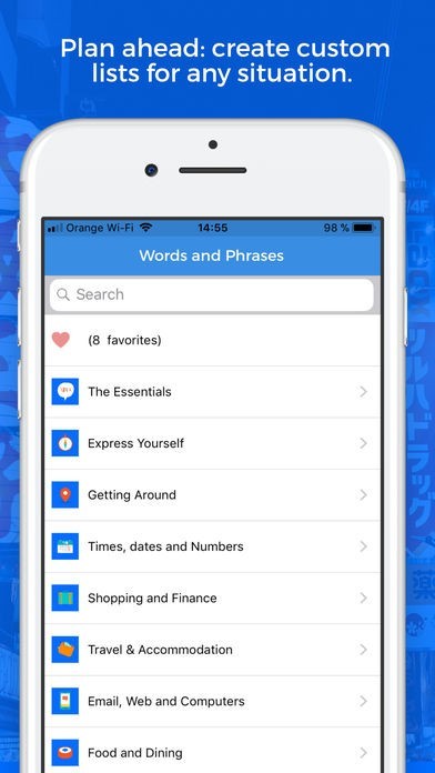 • Instantly search over 1000 essential words and phrases