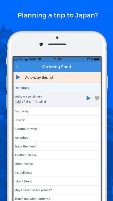App Storeより引用Planning a trip to Japan or just don’t have the time to study Japanese? With this offline phrasebook you will never be stuck for the right word. Jump instantly to the word or phrase you need with a Quick Search.