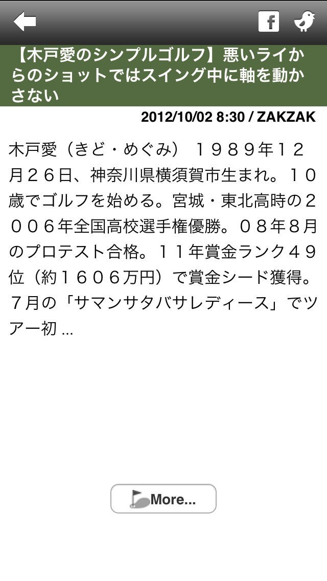 App Storeより引用あらゆるサイトからゴルフのニュースを収集し閲覧するGoogleニュースリーダーです。お気に入りの競技の情報をチェックしましょう。 また、キーワードを追加することで特定選手のニュースのみを収集することもできます。