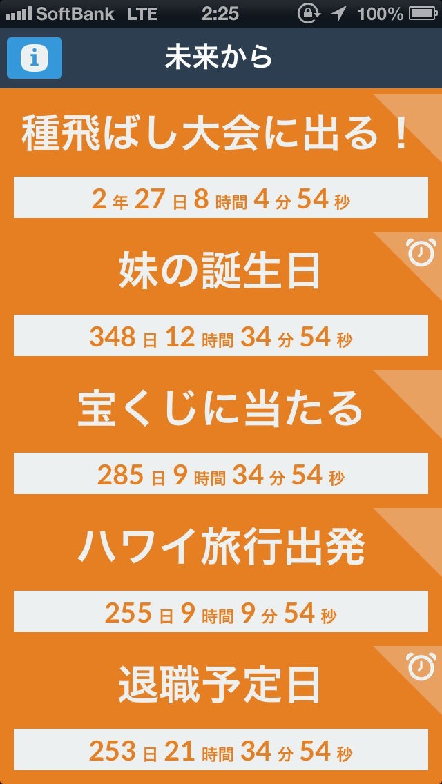 時間が無限にあるという錯覚はカウントダウン機能を活用することによってなくなります。一つのタスクが終わったら次のタスクまでの残り時間に目を向けることができる機能です。