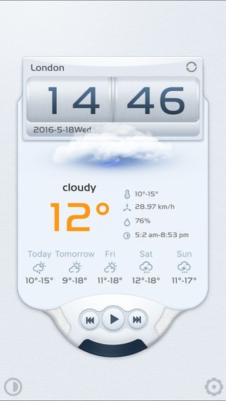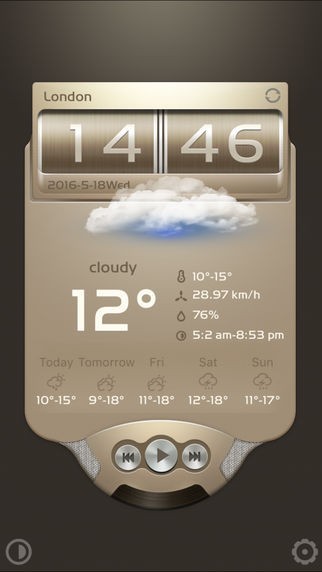 時計、先6日間の天気予報、音楽プレーヤー、カレンダーだけのシンプルなアプリです。そのため、ごちゃごちゃとした画面を表示するのが嫌で洗練された画面を使いたい人にお勧めです。