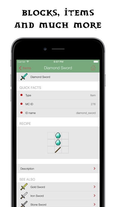 マインクラフトをプレイしている際に、アイテムの情報やレシピについて知りたいことが出てくると思います。そんな時にオススメなのが、このアプリです。知りたいと思った情報を、すぐに手に入れることが出来ますよ!
