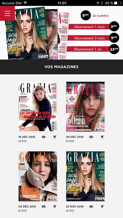 Abonnez-vous directement à votre magazine Grazia depuis l'application grâce à l'une de nos 3 formules :