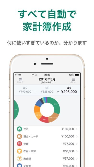 利用金額や消費内容をグラフ別に整理する事が可能なので、自分だけの家計簿もスムーズに作成出来ました。記入のし忘れを防ぐ付け忘れ防止アラートも使いやすいです。