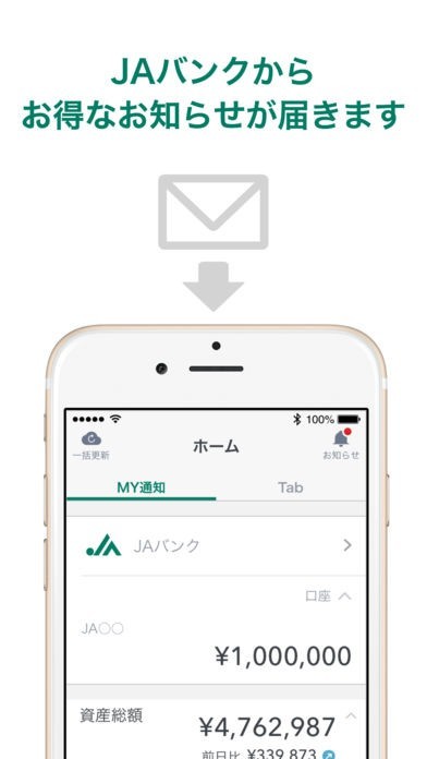通常のマネーフォワード搭載の機能に加え、JAバンクからお得な情報が配信!